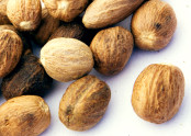 The nutmeg tree is a large evergreen native to the Moluccas (the Spice Islands) and is now cultivated in the West Indies. It produces two spices: mace and nutmeg. Nutmeg is the seed kernel inside the fruit and mace is the lacy covering (aril) on the kernel.