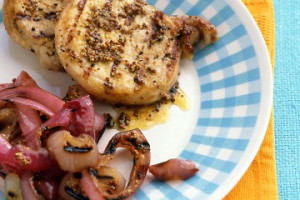 바베큐 Mustard-Coated Pork Chops and Onions