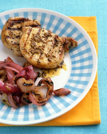 바베큐 Mustard-Coated Pork Chops and Onions