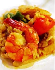 여러가지 해물과 고기 쏘세지 토마토등의 풍성한 재료에 샤프론으로 맛을 낸 스폐인의 쌀요리