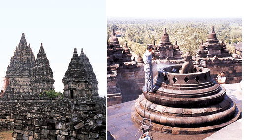 유형문화재는 그 수를 헤아릴 수 없을 정도로 수도 많고 규모도 거대했다. ‘보로부두르(Boro- budur) 사원’은 캄보디아의 앙코르와트 유적과 쌍벽을 이루는 장엄한 건축물로 세계 최대 최고의 불교유적이다. 이 사원은 8세기 후반에서 9세기 초에 지어진 것으로 천 년 이상이나 숲 속에서 화산재로 뒤덮여 있다가 발견되었다.