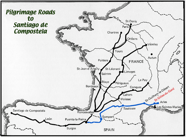 778년에 샤를마뉴대제가 The Reconquista 를 벌여 피례네산맥을 넘어가 스페인 북부를 점령하니 이슬람의 칼리프는 망해서 남쪽으로 내려가고 새로운 땅이 열려 산디에고까지 순례를 간다. 스페인은 서유럽의 도움으로 산티아고 디 콤프스텔라 성당에 이르는 순례자의 길을 획득한다. 독 영 프는 스페인이 이슬람에게 정복당하면 자신들이 위험하다는 생각을 했으므로 스페인의 레온 Leon과 카스텔리Castile의 두 영주를 계속 도와준다.