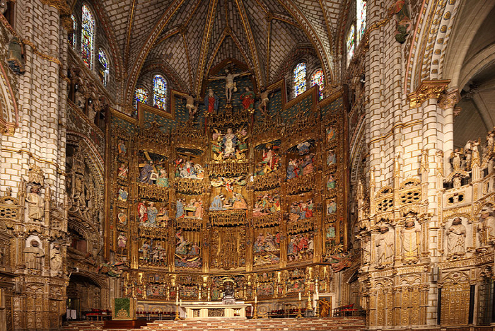 강렬한 금색이 뭍어나며 여러색이 가미된 polychrome 기법으로 커다랗고 매우 장식적인 Altar Screen 으로 Toledo Cathedral의 제단화 이다. Juan Peti, Juan de Borgona, Enrique Egas 등 조각/나무 장식 전문가, espado 기법 전문가, 건축가 등 여러 사람이 같이 작업을 했다. Protestant가 싫어하는 스타일로서 성인의 뼈, 머리털 등 relic 을 모아두는 유물함도 있는 전형적인 구교의 모습이다.