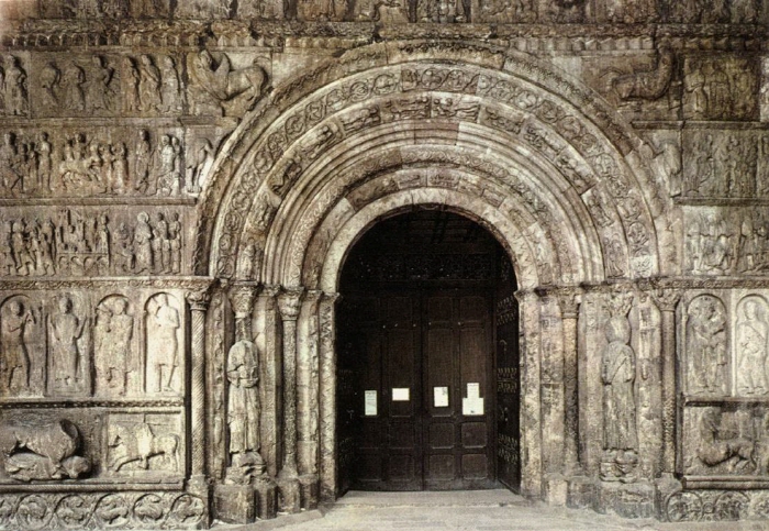 12세기에 Romanesque식으로 지은 산티아고 디 콤포스텔라는 간단한 아치형의 교회인데 17세기 바로크 시대에 다시 짓는다. 12세기에는 스페인도 서유럽과 같은 속도로 미술 사조를 따라가며 이탈리아, 플란드르 지방에서 조각가를 데려와 교류가 있었다.