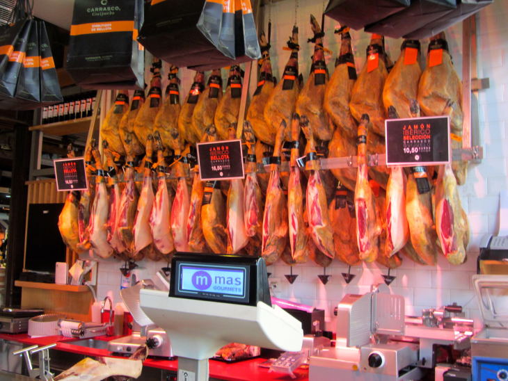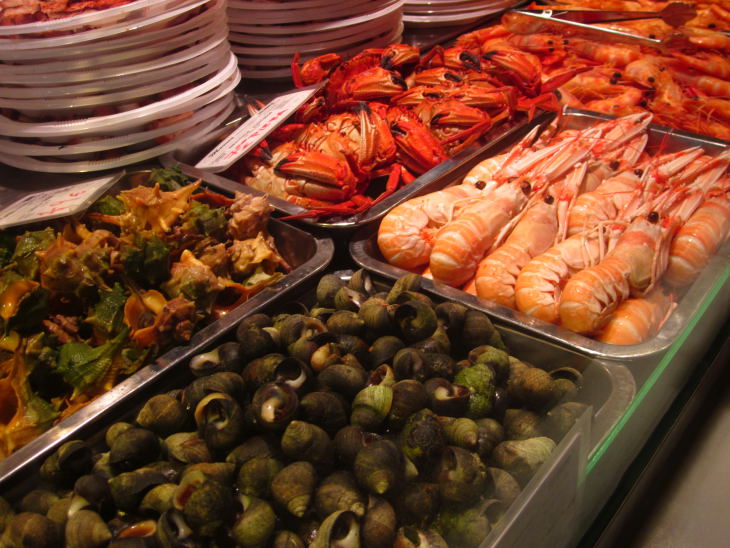 상점마다 포장과 진열방법도 달랐다. 모든 음식을 1유로에 파는 '한입 음식'도 많았다. 예를 들어, 연어 매장은 올리브로 싼 연어 조각을 이쑤시개로 꽂아 한입에 먹을 수 있도록 했다. 하몽도 다르지 않았다. 1유로를 내면 맛을 볼 수 있는 분량이었다. 생선은 반 토막씩 팔고, 치즈는 한입에 쏙 들어가도록 포장해 놓았다. 소시지, 베이컨, 만두도 마찬가지였다. 10유로만 있으면 10가지의 음식을 맛볼 수 있을 것 같았다. 스페인 음식을 다양하게 맛보고 싶은 고객을 위한 배려였다.