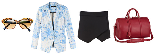 대칭적인 풀오버 가죽 디테일로 시선은 중앙으로 모였지만 색상의 포인트는 다른 곳에 있었다. 마치 상쾌한 봄 하늘에 구름이 떠가는 듯한 티비(TIBI) 재킷은 봄기운을 더했고, 레드 컬러 루이비통(Louis Vuitton) 소피아 코폴라 백은 화려한 색감을 강조했다.