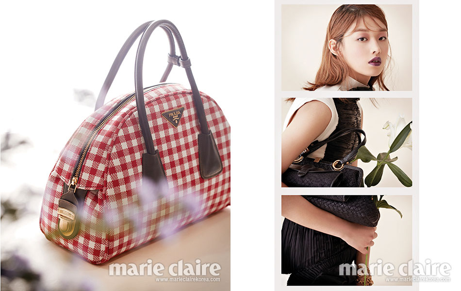 좌측이미지:PRADA 테스토 울과 비텔로 빈티지 소가죽이 섞인 깅엄 체크 무늬 토트백 1백80만원대.