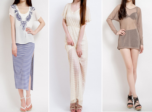 ▲ 파도가 쏟아지는 해변, 시스루 스타일과 맥시드레스