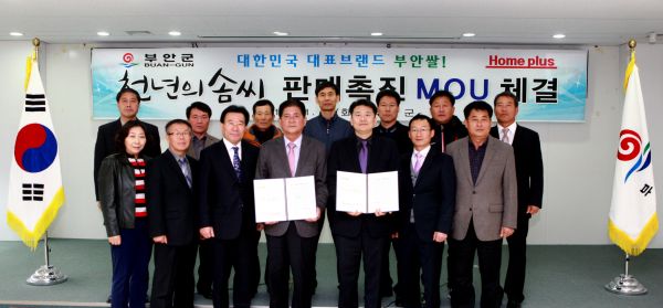 부안군은 19일 홈플러스와 부안쌀 천년의 솜씨 판매촉진을 위한 협력체계 구축에 따른 업무협약을 체결했다.