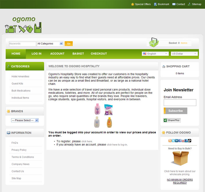 2011년 10월에 런칭된 ‘Ogomo’는 적당한 사이즈로 화장품류를 포장하기 때문에 규제사항에 대한 불만감을 해소하기를 희망한다. 이 온라인 서비스는 의약품, 화장품류, 아기용품, 뿐만 아니라 여행 갈 때 필요한 모든 품목들을 구비해놨다. 이 여행용 물건들은 비즈니스 여행객들이나 관광객들을 대상으로 한다. 그러나 ‘Ogomo’ 웹사이트는 캠핑하러 가는 여행객들이나 군부대, 집이 없는 사람들, 그리고 사무직에 있는 사람들도 이러한 서비스를 이용할 수 있도록 하였다. ‘Ogomo’의 이용료는 USD 50이고 여행객들의 가방을 가볍게 해 줄 수 있고 고객의 목적지까지 안전하게 배달해 준다. 그리고 왕복 항공편을 이용할 때에는 공항 안전 준수사항에 적합한 가방을 제공해 준다.