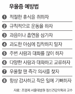 많은 사람들이 정신과 질환은 잘 낫지 않는다고 생각하지만 우울증은 치료가 잘되는 병이다. 전문의와 상담해 치료를 받는 한편으로 스스로도 극복하기 위해 노력을 해야 한다.