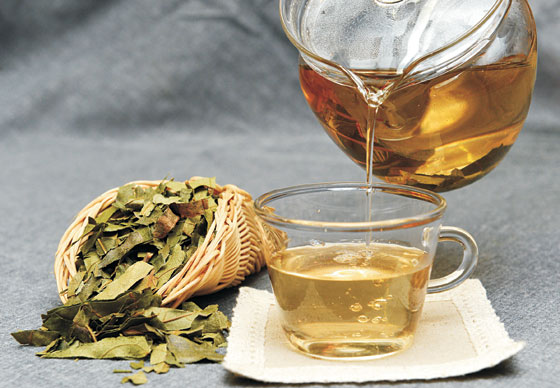 ↑ 비타민C와 플라보노이드 성분 등을 풍부하게 함유하고 있어 치아 환경에 좋은 영향을 주는 것으로 알려진 감잎차.