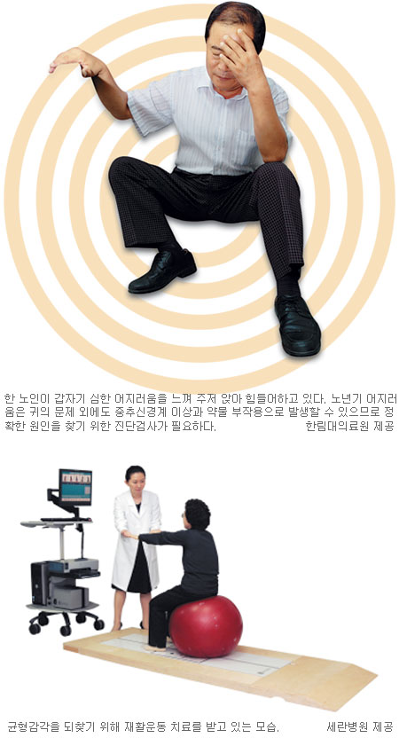 특히 노인들은 어지럼증을 질병으로 여기지 않고 빈혈, 나이, 체력저하 탓으로 생각해 제때 치료를 받지 않고 증상을 키우는 경우가 많아 가족의 세심한 주의와 관심이 필요하다. 어지럼증을 느끼는 노인들은 균형감각 이상으로 운동장애나 낙상 사고 위험뿐 아니라 2차적으로 우울증 같은 합병증을 겪기도 쉽다.