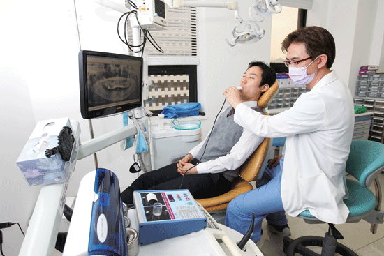 ↑ 구취는 본인이 느끼지 못하는 경우가 많아 객관적인 검사가 필요하다. 한 구취 환자가 치과에서 구취 측정기를 사용해 구취를 측정하고 있다.