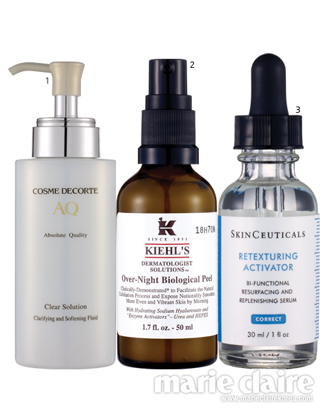2 키엘 오버나이트 바이오로지컬 필. 50ml, 6만4천원. 바르고 자면 다음 날 피부결이 한결 환하게 개선되는 필링 에센스.