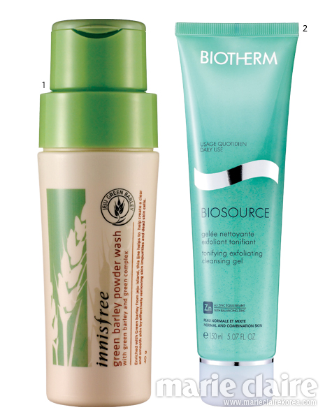 1 이니스프리 청보리 파우더 워시. 40g, 1만5천원. 노폐물 제거 효능이 쌀겨의 10배에 이르는 청보리 성분을 함유한 각질 제거 파우더.